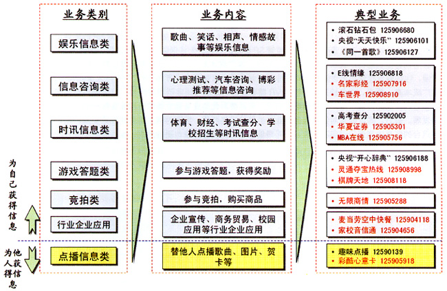 與國(guó)外情況不同的是,IVR這個(gè)詞對(duì)國(guó)內(nèi)手機(jī)用戶來說至今還比較陌生。但是,實(shí)際上中國(guó)移動(dòng)的相關(guān)IVR業(yè)務(wù)早在2002年年末就開始了布局,2003年更是加大了對(duì)IVR業(yè)務(wù)發(fā)展的投入。例如:中國(guó)移動(dòng)語音雜志,就是一個(gè)典型的IVR業(yè)務(wù)。它為手機(jī)用戶提供的一個(gè)集語音、短信為一體的信息服務(wù)獲取平臺(tái),通過撥打以12590為字冠的語音接入號(hào)碼,中國(guó)移動(dòng)的手機(jī)用戶可以為自己或者他人獲得語音信息、短信內(nèi)容服務(wù)等。其便捷性主要體現(xiàn)在隨時(shí)隨地、輸入方式方便、終端普及和接入方式簡(jiǎn)單上。