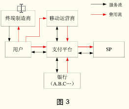 該模式中,第三方支付服務(wù)提供商是獨(dú)立于銀行和移動(dòng)運(yùn)營(yíng)商之外的經(jīng)濟(jì)實(shí)體,其自己拓展用戶,與銀行及移動(dòng)運(yùn)營(yíng)商協(xié)商合作,提供手機(jī)支付業(yè)務(wù),見(jiàn)圖3。