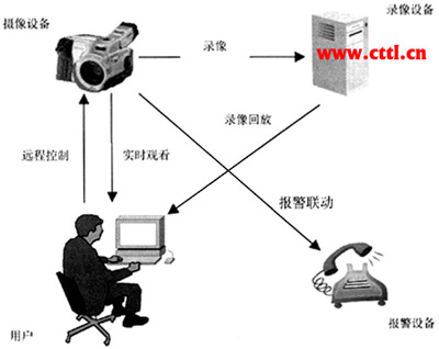 視頻監(jiān)控的基本業(yè)務(wù)功能是提供實(shí)時(shí)監(jiān)視的手段,并對(duì)被監(jiān)視的畫(huà)面進(jìn)行錄像存儲(chǔ),以便事后回放。在此基礎(chǔ)上,高級(jí)的視頻監(jiān)控系統(tǒng)可以對(duì)監(jiān)控裝置進(jìn)行遠(yuǎn)程控制,并能接收?qǐng)?bào)警信號(hào),進(jìn)行報(bào)警觸發(fā)與聯(lián)動(dòng)。業(yè)務(wù)功能如圖1所示。