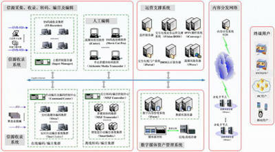 100路衛(wèi)星電視節(jié)目自動收錄及編目,經(jīng)由流媒體節(jié)目剪輯、拆條;然后通過CDN提供ISOMPEG4(IPSetTop Box接收) 和Windows