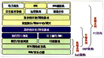 當(dāng)前國(guó)內(nèi)IPTV業(yè)務(wù)試點(diǎn)中采用的機(jī)頂盒,包括華為、中興、UT等主流廠(chǎng)商都主要采用了基于DSP架構(gòu)的技術(shù)解決方案,除能滿(mǎn)足點(diǎn)播、直播等標(biāo)清業(yè)務(wù)需求外,還可通過(guò)軟件升級(jí),以支持信息瀏覽、簡(jiǎn)單的本地/網(wǎng)絡(luò)游戲等增值業(yè)務(wù),基本上可滿(mǎn)足上述業(yè)務(wù)一定規(guī)模用戶(hù)商用要求。