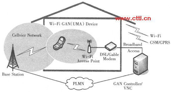 (3)終端融合。終端融合主要是指能夠提供固定和移動網(wǎng)絡連接的智能終端(見圖3),用戶采用多模終端后,可以根據(jù)自己的意愿選擇接入最適合的網(wǎng)絡:固定或移動網(wǎng)絡,而網(wǎng)絡本身也可以智能地根據(jù)用戶的接入方式作出最佳的動作。