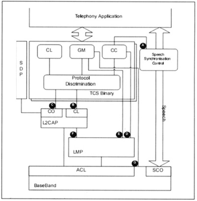 。3)CO(Connection)接口利用點(diǎn)對點(diǎn)信令發(fā)送TCS消息給L2CAP,以便在面向連接的信道上傳輸。