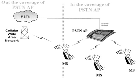 室外環(huán)境下,即脫離藍(lán)牙網(wǎng)絡(luò)覆蓋范圍,CTP MS可以通過蜂窩網(wǎng)絡(luò)接打電話。當(dāng)CTP MS從室外進(jìn)入到藍(lán)牙網(wǎng)絡(luò)覆蓋區(qū),不需要人工干預(yù),MS可以自動通過AP進(jìn)行注冊,并將蜂窩網(wǎng)絡(luò)的電話轉(zhuǎn)移到藍(lán)牙語音網(wǎng)關(guān)所連接的線路上,撥打PSTN網(wǎng)絡(luò)電話。