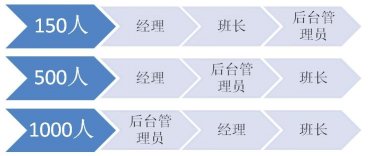 當(dāng)員工人數(shù)到達(dá)500人的時候,班長往往有30位左右。很多經(jīng)理已經(jīng)不能夠?qū)γ课话嚅L有足夠的了解,更不要說去認(rèn)識大部分員工。這個時候,經(jīng)理對班長的比例過寬,需要強(qiáng)化后臺管理員的角色。比如排班、績效、質(zhì)量管理(而不僅是評估)、信息分析(數(shù)據(jù)和報(bào)告)、行政、培訓(xùn)等工作中,這些管理輔助角色都在逐漸強(qiáng)化。而每一個后臺管理者可能成了經(jīng)理的直接下屬,他們起草的流程和制度,來由經(jīng)理決策。某種程度上說,他們比班長的影響力更大,因?yàn)榘嚅L還是影響著12-20人。有時候后臺管理員也決定了班長的時間精力分配,那是班長最寶貴的資源。那么誰是管理者呢?首先是經(jīng)理,其次是后臺管理員,最后才是班長。