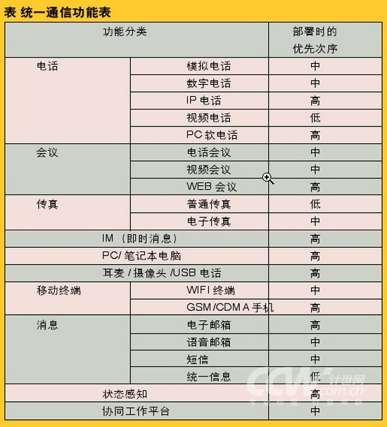 ”、“智能通信”和“統(tǒng)一溝通”等,盡管每個廠商所給出的定義均有些細微的差別,但總體來看,其核心內容就是指將現(xiàn)在各種溝通方式進行融合,目的是讓人們無論是在任何時間、任何地點,都可以通過任何設備、任何網(wǎng)絡實現(xiàn)自由的溝通。目前常用的溝通方式有電話、傳真、短信、email、Web會議、視頻會議、語音信箱、IM軟件、協(xié)同工作平臺等等,這些溝通方式覆蓋了電信、IT和互聯(lián)網(wǎng)三大領域,因此統(tǒng)一通信是這三大領域逐步發(fā)展、自然融合的結果。