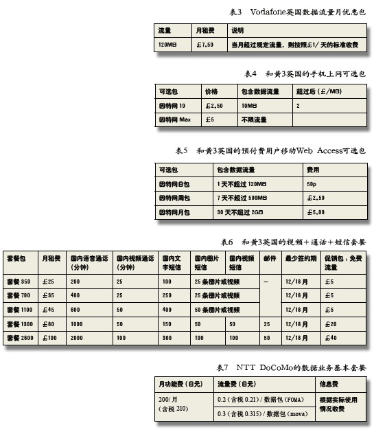 國外運營商 移動數(shù)據(jù)業(yè)務(wù)資費策略