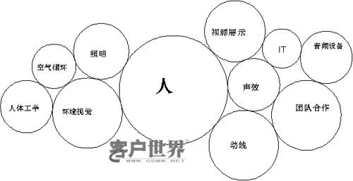 我們“以人為本”的出發(fā)點,相信能夠得到您的認(rèn)同。但是空間中所包含的元素還是非常的復(fù)雜。即使在我們內(nèi)部編寫的《呼叫中心營建白皮書》中,就呼叫中心空間設(shè)計的要點一項,就有15個方面之多,相信以后隨著經(jīng)驗和需求的變化,還會有所增加。