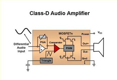 在音頻解決方案中進(jìn)行折衷與音頻處理性能、音頻輸出功率、熱耗散和整體的功耗有關(guān)。傳統(tǒng)的音頻方案由兩到三個(gè)受AB類音頻功率放大器驅(qū)動(dòng)的揚(yáng)聲器構(gòu)成。然而,相對(duì)于它的整個(gè)音頻輸出而言,AB類放大器的工作固有地生成大量的熱。這些積聚起來的高溫因?yàn)樾枰蟮纳崞瑏砩l(fā)熱量,所以,在大多數(shù)薄形狀因子的平面電視中禁止采用AB類放大器。為了解決這個(gè)問題,業(yè)界采用了D類放大器技術(shù)(圖3)。目前,輸出場(chǎng)效應(yīng)三極管(FET)可以在截止區(qū)與飽和區(qū)之間切換,從而提供比AB類放大器更高的效率,F(xiàn)有的音頻解決方案容許你完全利用數(shù)字信號(hào)路徑。這不僅僅最大化音頻效率,而且,它們也提供有效的處理和大于110dB的信噪比(SNR)。