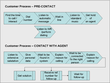 那么,從企業(yè)內(nèi)部的觀(guān)點(diǎn)出發(fā)看我圍繞這次簡(jiǎn)單的預(yù)定流程所產(chǎn)生的總體客戶(hù)體驗(yàn)如何呢?這需要好好評(píng)估,我一共只打了兩次電話(huà)并在24小時(shí)內(nèi)得到解決,而且我們之間的互動(dòng)——很有可能——已經(jīng)被記錄在航空公司的CRM系統(tǒng)中。但是如果你問(wèn)問(wèn)作為客戶(hù)的我,我會(huì)給出一個(gè)完全不同的場(chǎng)景描述:首先,提供給我的可聯(lián)絡(luò)電話(huà)號(hào)碼實(shí)在太多了,其次,沒(méi)有說(shuō)明這些電話(huà)號(hào)碼處理的“范圍”各是什么,再次代理質(zhì)量不合格,她完全不知道自己該干什么,還得求助于另外一個(gè)同事,最后,也是很重要的一點(diǎn),最終提交的解決方法并不能讓人接受。這些信息——或者說(shuō)的更準(zhǔn)確些,客戶(hù)的評(píng)價(jià)——出現(xiàn)在呼叫中心的報(bào)告里了嗎?出現(xiàn)在哪兒?沒(méi)有,這一方面是因?yàn)榱鞒滩⒉皇且钥蛻?hù)為中心的觀(guān)點(diǎn)來(lái)定義的,另一方面因?yàn)槲覀兪侨,我們努力的在工作,不希望自己變成透明人?