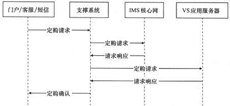 IMS網(wǎng)絡(luò)用戶為了能使用VS業(yè)務(wù),首先必須進行VS業(yè)務(wù)的定購,業(yè)務(wù)定購流程如圖3所示,具體步驟如下。