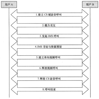 步驟1:建立語音呼叫。雙方先建立電路域的語音呼叫,由于電路域的語音呼叫直接通過核心網(wǎng)與GSM的核心網(wǎng)進行電路域語音路由接續(xù),因此該步驟不需要VS業(yè)務(wù)網(wǎng)關(guān)參與。