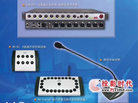 最多可串接到15臺,擴充為120支話筒的會議系統(tǒng)。每聲道的麥克風(fēng)輸入都裝有限幅器功能。8聲道麥克風(fēng)或LINE輸入,另設(shè)一組輔助。附耳機監(jiān)聽輸出插座。