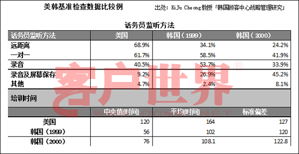 上圖是全南大學(xué)教授Ki Ju Cheong調(diào)查比較韓國(guó)和美國(guó)客服中心后的報(bào)告書的一部分。Ki Ju Cheong教授自稱是因分析客服中心標(biāo)準(zhǔn)指數(shù)聞名于世的美國(guó)Purdue大學(xué)安東博士的學(xué)生。通過這個(gè)圖表可以簡(jiǎn)單看出韓國(guó)客服中心經(jīng)營(yíng)的改善狀況。