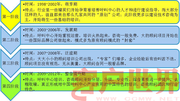 圖2:呼叫中心培訓(xùn)、咨詢顧問的發(fā)展階段
