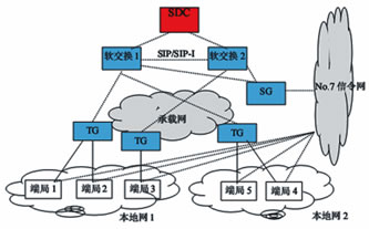 SDC與軟交換之間的信令傳輸可以采用TDM或IP兩種方式,采用TDM方式,軟交換與SDC之間直接通過E1鏈路傳輸信令;采用IP方式,在有獨立信令網關配置的情況下,軟交換與SDC之間可以通過信令網關基于IP轉接INAP/MAP+信令。