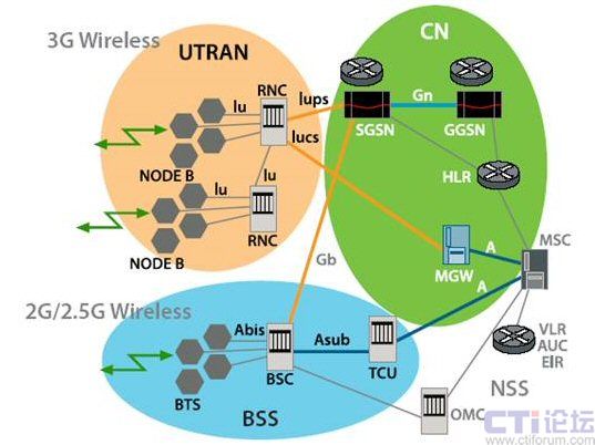 (RNC) 這一元素。在 3G UMTS 網(wǎng)絡(luò)中,RNC 可執(zhí)行無(wú)線電資源管理、移動(dòng)管理和加密功能,它可通過媒體網(wǎng)關(guān)連接至電路交換核心網(wǎng)絡(luò),實(shí)現(xiàn)電路交換語(yǔ)音服務(wù),此外,它還可連接至數(shù)據(jù)包交換核心網(wǎng)絡(luò)中的