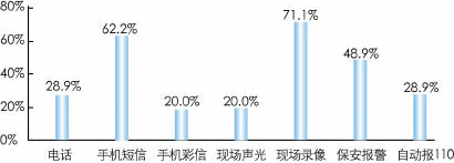 圖1、圖2分別顯示了家庭用戶對視頻監(jiān)控業(yè)務感興趣的原因,以及需要的報警方式。調研顯示:用戶對家庭視頻監(jiān)控業(yè)務的需求主要集中在兩個方面:一是報警聯(lián)動,以提高家庭財產安全性;二是視頻看護,可隨時了解家中情況(包括老人、小孩等)。另外,通過手機監(jiān)控和接收報警的需求也十分明顯。