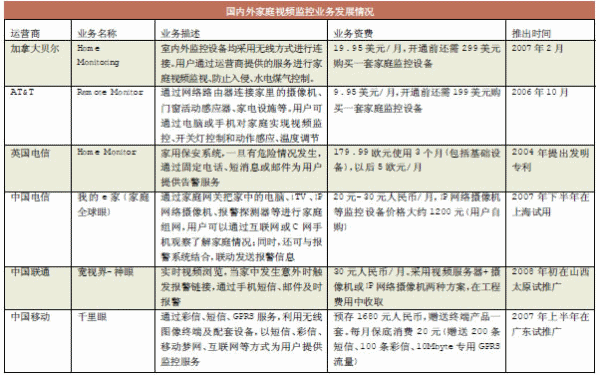 雖然數字家庭的全面實現還需要相當漫長的過程,但是安防報警、視頻監(jiān)控技術將會最先在數字家庭中得到應用。目前國內家庭監(jiān)控市場還處于起步階段,然而3G的高帶寬將開辟家庭視頻監(jiān)控新時代,并將催生出巨大的市場商機。