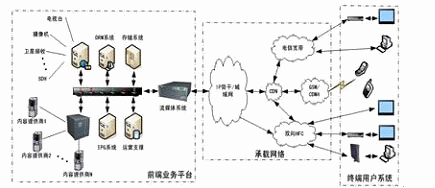 從系統(tǒng)圖中可以看出,IPTV業(yè)務與其它業(yè)務相似,總體上由前端業(yè)務平臺、承載網(wǎng)絡和終端用戶系統(tǒng)構(gòu)成。前端業(yè)務平臺的內(nèi)容有來自電視臺的直播電視節(jié)目、衛(wèi)星直播節(jié)目、SDH網(wǎng)傳送的直播節(jié)目和自辦節(jié)目,存儲再放的時移節(jié)目,還有來處不同內(nèi)容提供商提供的點播節(jié)目和信息服務。同時還有數(shù)字版權(quán)管理(DRM)系統(tǒng)、電子節(jié)目指南(EPG)、認證、授權(quán)、計費等運營支撐系統(tǒng)(BOSS),把業(yè)務內(nèi)容通過流媒體系統(tǒng)輸出至承載網(wǎng)絡。承載網(wǎng)絡包括IP骨干或城域網(wǎng),內(nèi)容分發(fā)系統(tǒng)(CDN)和銅線、雙向HFC、無線(GSM或CDMA或WLAN)等接入網(wǎng)絡。終端用戶系統(tǒng)可能是TV、STB+TV、PC、CM+PC、手機等。