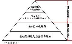 擁有4億多注冊(cè)用戶的騰訊,占有中國(guó)即時(shí)通信80%的市場(chǎng)份額,互聯(lián)網(wǎng)行業(yè)贏家通吃的定律顯露無(wú)疑,騰訊在海量用戶群基礎(chǔ)上開發(fā)的各種業(yè)務(wù)都在行業(yè)排名前列。當(dāng)電視服務(wù)的規(guī)模用戶群得以穩(wěn)固,基于用戶規(guī)模之上的多元化服務(wù)集成成為可能,對(duì)電視服務(wù)形成高度依賴的用戶群具備了價(jià)值挖掘的條件。人人交互、人機(jī)交互依托基礎(chǔ)的電視分眾門戶化應(yīng)用,形成了最初的用戶使用習(xí)慣;依托電視分眾門戶化集成的積累,建立用戶識(shí)別、用戶分析、收視分析、用戶數(shù)據(jù)交換的技術(shù)體系,用以支撐未來(lái)多元化娛樂(lè)與服務(wù)的開發(fā);贗PTV的交互能力,依托電視終端的易用性與舒適性,用戶價(jià)值、終端價(jià)值被充分挖掘,電視服務(wù)開始對(duì)其他媒介形式(含互聯(lián)網(wǎng))的用戶形成吸納。圍繞交互、商務(wù)需求的電子貨幣體系逐漸完善,電視進(jìn)入可有效運(yùn)營(yíng)、可便捷支付的良性的產(chǎn)業(yè)循環(huán),IPTV多元化業(yè)務(wù)之門打開。