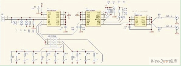 在本方案中,我們采用MAX4445配合外部阻容均衡網(wǎng)絡(luò)固定補(bǔ)償特定的傳輸距離,并結(jié)合MAX7474自動(dòng)均衡的特點(diǎn)來補(bǔ)償網(wǎng)線質(zhì)量、安裝距離和阻容器件參數(shù)分散性等帶來的差異,很好地解決了1200米視頻信號(hào)的自適應(yīng)傳輸。