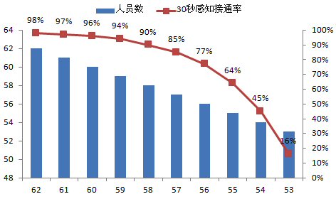呼叫中心指標體系中最為基礎(chǔ)最為關(guān)鍵的就是接通率指標了,下面,本文重點將呼叫中心部分與接通率相關(guān)的運營數(shù)據(jù)轉(zhuǎn)化成圖表,用erlang-C(國際標準的呼叫中心管理軟件)的計算數(shù)據(jù)表示管理和資源投入對于呼叫中心生產(chǎn)的巨大影響。