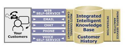 Technologies”是一家非常著名的多接觸點呼叫中心供應(yīng)商,這家公司建議采用“通用事故”追蹤機制,它強調(diào)報表和歷史紀(jì)錄必須作為任何一個多接觸點聯(lián)絡(luò)中心不可或缺的組成部分。“Rightnow”提供的以下插圖很清楚地向我們展示了多渠道知識庫集成是如何被強制執(zhí)行的。