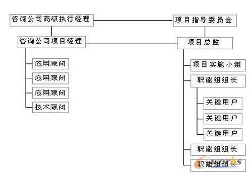 整個組織結(jié)構(gòu)分三層,咨詢公司可以在每一層都安排相應(yīng)人員予以支持。最高層為項(xiàng)目指導(dǎo)委員會,具有高度決策權(quán)。一般由總經(jīng)理主持,企業(yè)有關(guān)高層經(jīng)理和項(xiàng)目總監(jiān)作為成員。