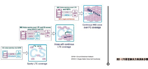 讓我們來看看主流運營商在LTE時代有哪些語音解決方案可以挑選,以及它們的優(yōu)劣比較(見表1)。圖3為實現(xiàn)LTE語音解決方案的具體步驟。