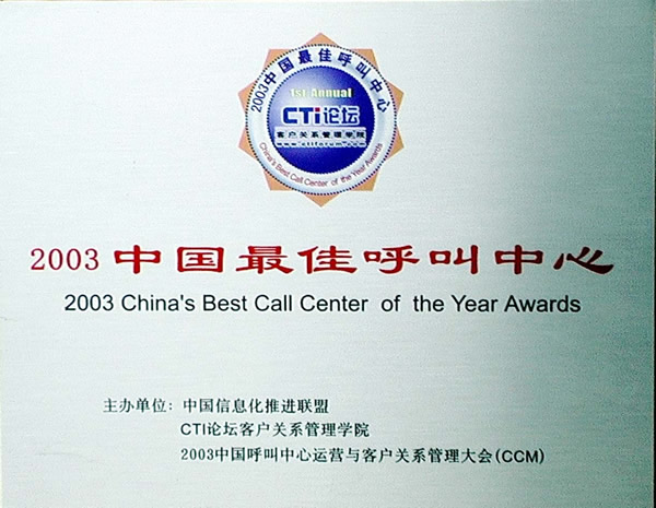 國家級稱號有“全國建設(shè)信息工作先進單位”、“全國創(chuàng)建文明行業(yè)工作先進單位”、“全國巾幗文明示范崗”、“2003中國最佳呼叫中心”。