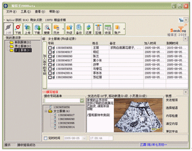 "短信王"的彩信模塊操作起來非常方便。以某服裝專賣店為例,通過使用"短信王"的企業(yè)彩信功能,它可以向廣大會員顧客發(fā)送最新的服裝款式信息,而這個信息除了文本介紹外,同時還附帶清晰的圖片。會員足不出戶就可以在第一時間看到最新的上架服裝,并對自己喜歡的款式回復短信下單。會員享受了超值服務、節(jié)省了時間,對于服裝店來說,也獲得了一種高效的經(jīng)營方法并加深了與客戶之間的關系。
