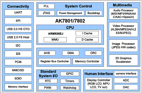 AK36系列PND方案的硬件架構(gòu)由AK36系列外接GPS模塊或芯片組組成,搭配MLC Nandflash海量存儲(chǔ)。軟件方面采用安凱自主研發(fā)的輕量級(jí)操作系統(tǒng)實(shí)現(xiàn)系統(tǒng)和多媒體等主要功能,內(nèi)置凱立德V3.0的導(dǎo)航版本。據(jù)安凱稱,該方案具有系統(tǒng)成本低、加工簡(jiǎn)單、低功耗、平臺(tái)穩(wěn)定且開放性好、卓越的搜星性能等優(yōu)勢(shì)。