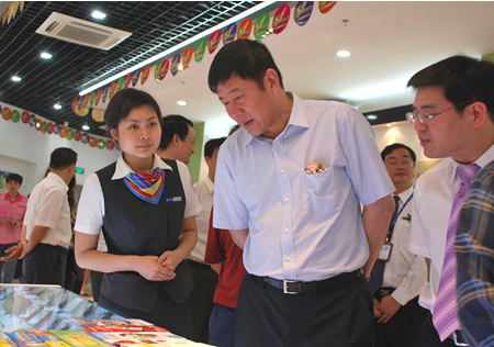 中國電信浙江公司副總經(jīng)理吳曉偉(中)、杭州分公司總經(jīng)理陳忠岳(右一)參觀數(shù)碼城。