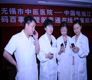 5月25日,江蘇省無(wú)錫市中醫(yī)醫(yī)院18位專家級(jí)醫(yī)師接受了中國(guó)電信江蘇公司的聘請(qǐng),成為無(wú)錫首批電話在線的健康顧問(wèn)。全省電信用戶只要撥打號(hào)碼百事通118114,即可得到在線醫(yī)療、健康專業(yè)指導(dǎo)。118114健康平臺(tái)還能為出院病人提供康復(fù)指導(dǎo)、動(dòng)態(tài)跟蹤、復(fù)診提醒等健康管理服務(wù)。通過(guò)這一形式,能盡快實(shí)現(xiàn)一個(gè)醫(yī)前、醫(yī)中、醫(yī)后服務(wù)鏈。圖為無(wú)錫市中醫(yī)醫(yī)院的健康顧問(wèn)們?cè)跒榛颊呒w電話會(huì)診。