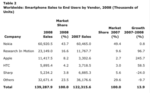 進(jìn)入2009年,依然無(wú)法擋住它的快速擴(kuò)張步伐,第二季度最后一個(gè)月才推出的 iPhone3GS在僅賣了幾周之下 ,就協(xié)同 老款3G (價(jià)格削減一半,至每部99美元)使當(dāng)季銷量 達(dá)到520萬(wàn)臺(tái),與去年同期相比增長(zhǎng)了626%(去年同一時(shí)期蘋果賣出了71.7萬(wàn)臺(tái)iPhone)可謂驚人。
