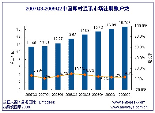 09年2季度中國(guó)即時(shí)通訊累計(jì)注冊(cè)賬戶(hù)數(shù)達(dá)16.76億