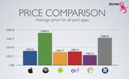 圖:為蘋果和Android等各種應(yīng)用的平均售價(jià)比較