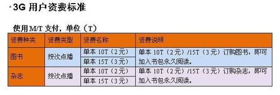 據(jù)了解,中國聯(lián)通手機(jī)閱讀業(yè)務(wù)只針對(duì)聯(lián)通網(wǎng)內(nèi)手機(jī)用戶,采用按次點(diǎn)播(按本訂購)的資費(fèi)標(biāo)準(zhǔn)。同時(shí),2G用戶和3G用戶采用不同的支付方式,2G用戶使用手機(jī)話費(fèi)支付,3G用戶使用M/T支付。