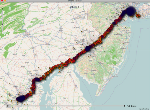 這款名為“iPhone Tracker”的程序,用來顯示iOS 4設備收集用戶地理位置的情況艾倫和沃頓稱,這些信息被存儲在consolidated.db 文件中。他們還開發(fā)了一款名為“iPhone Tracker”的程序,用來顯示iOS 4設備收集用戶地理位置的情況。
