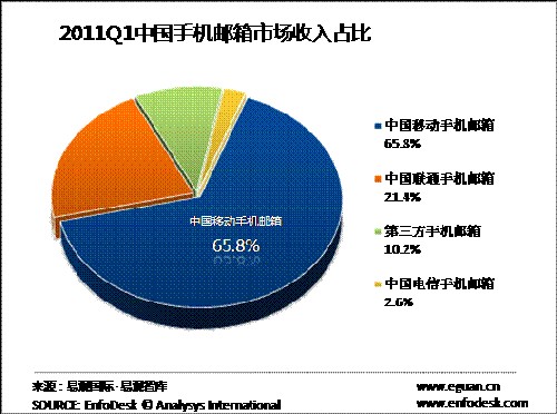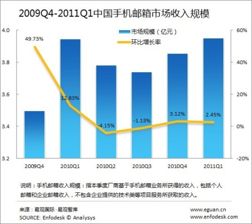 2011年Q1中國手機郵箱市場收入規(guī)模達3.95億元