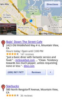 當用戶在移動設(shè)備上搜索周圍商店位置時,那么他當前所在的位置將出現(xiàn)在地圖上,而且地圖上還會顯示用戶周邊營業(yè)場所的位置。