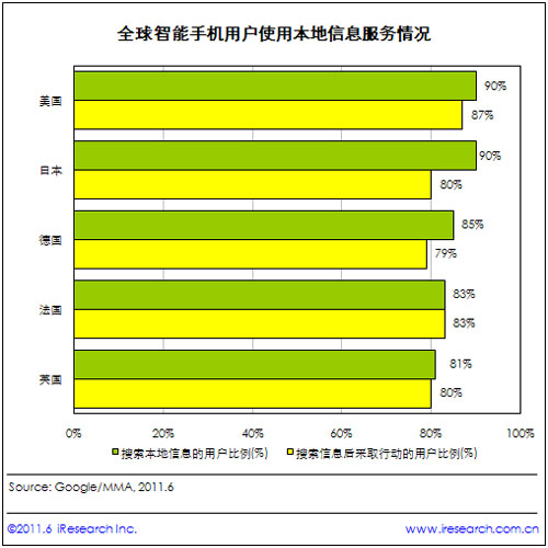 艾瑞:全球智能手機(jī)用戶熱衷于使用本地信息服務(wù)