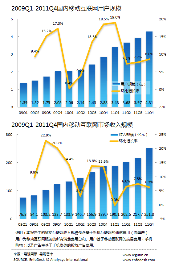 2011年國(guó)內(nèi)移動(dòng)互聯(lián)網(wǎng)用戶(hù)規(guī)模突破4億
