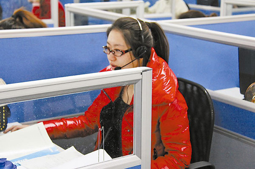 趙曉薇(化名)是拉手網(wǎng)北京客服部的一名工作人員,每天早上8:30,她會準(zhǔn)時(shí)戴上耳麥,開始一天忙碌的工作!疤孛,電話多的時(shí)候,一天得有300個(gè)來電!睍赞笔且粋(gè)語氣平和,聲音甜美,笑容溫和的女孩子。正說著,她就趕緊接通了正在鈴鈴作響的電話,開始熱情、耐心地為用戶釋疑解困。