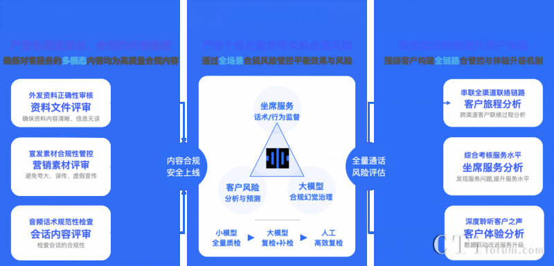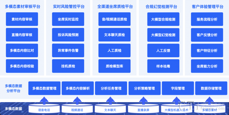 依托多項(xiàng)AI能力融合應(yīng)用,升級(jí)后的【多模態(tài)合規(guī)分析平臺(tái)】能處理對(duì)話數(shù)據(jù)、圖片、音頻和視頻等各種格式的信息,同時(shí)采用大小模型組合式AI合規(guī)檢查機(jī)制,對(duì)各個(gè)渠道的客戶(hù)互動(dòng)數(shù)據(jù)進(jìn)行聚合分析,實(shí)現(xiàn)大模型構(gòu)成坐席和客戶(hù)間全場(chǎng)景多模態(tài)數(shù)據(jù)檢測(cè)與分析,以及客戶(hù)體驗(yàn)升級(jí)。