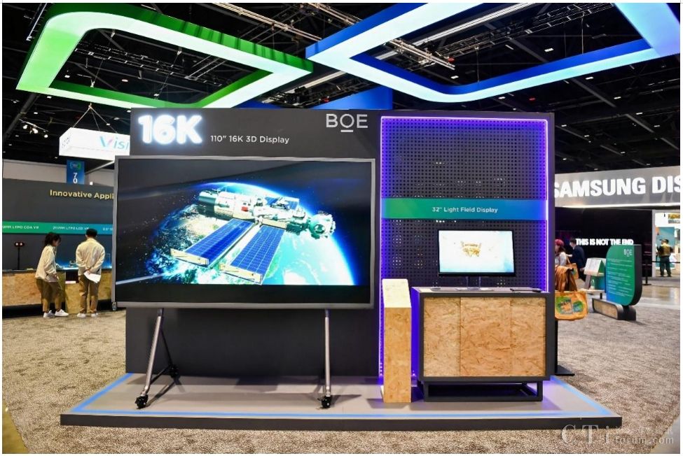 本次SID,BOE(京東方)攜三大技術(shù)品牌重磅首發(fā)的多款行業(yè)領(lǐng)先顯示技術(shù)和產(chǎn)品驚艷亮相。步入展區(qū),首先映入眼簾的是BOE(京東方)重磅首發(fā)的全球首款16K 110英寸超大尺寸裸眼3D顯示屏,并以超高清、超高分辨率、多視點、廣色域等優(yōu)勢突破了顯示行業(yè)的創(chuàng)新高度,該產(chǎn)品搭載高色域Mini LED背光技術(shù)以及BOE(京東方)自主研發(fā)的16K交織排圖算法,3D視角擴大至60°,廣泛應用于廣告、會議、教育等多元化場景。