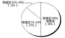 調(diào)查結(jié)果顯示,明年通信提供商的CRM支出仍將迅速增長(zhǎng)。80%的被調(diào)查者表示將增加對(duì)CRM方案的支出,10%的被調(diào)查者稱CRM預(yù)算將保持不變,另有10%的被調(diào)查者不知道CRM支出會(huì)如何變化。在80%計(jì)劃增加CRM支出的被調(diào)查者中,半數(shù)的CRM支出將增加100%或更多。另外13%的支出增長(zhǎng)在25%~49%之間。37%的被調(diào)查者將增加1%~24%的支出(見圖1)。
