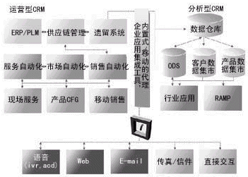 CRM是一種以客戶為中心的業(yè)務模式,是由多種技術手段支持的、通過以客戶為中心達到增強企業(yè)競爭力的商業(yè)策略,這一點已在市場上取得了共識。這種認識對許多企業(yè)來說,或許仍覺得有些抽象。CRM要達到的目標,就是在適當?shù)臅r間通過適當?shù)那澜o適當?shù)目蛻籼峁┻m當?shù)漠a(chǎn)品和服務,這不是憑一種技術手段就能夠?qū)崿F(xiàn)的。美國調(diào)研機構Meta Group把CRM分為三類(如圖1所示):一是與企業(yè)業(yè)務運營緊密相關的運營型CRM。運營型CRM即所謂的前端辦公室應用,包括銷售自動化、市場自動化、服務自動化等應用,以及前端辦公室和后端辦公室的無縫集成。二是以數(shù)據(jù)倉庫為基礎、實現(xiàn)統(tǒng)一客戶視角的分析型CRM。分析型CRM與數(shù)據(jù)倉庫密切相關,運用數(shù)據(jù)挖掘、OLAP、交互查詢和報表等手段,了解客戶的終身價值、信用風險和購買趨向等。三是基于多媒體聯(lián)系中心、建立在統(tǒng)一接入平臺上的協(xié)作型CRM。協(xié)作型CRM是為客戶交互服務和收集客戶信息提供的各種渠道及聯(lián)系的手段。