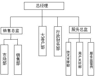 經(jīng)過(guò)討論,結(jié)合公司的實(shí)際情況,Z公司迅速采納了項(xiàng)目組提出的建議,并在CRM項(xiàng)目啟動(dòng)大會(huì)上宣布項(xiàng)目開(kāi)始實(shí)施。而且調(diào)整了組織結(jié)構(gòu),新的結(jié)構(gòu)如圖2所示。整個(gè)CRM項(xiàng)目分兩個(gè)階段實(shí)施,第一階段實(shí)現(xiàn)銷售業(yè)務(wù)的跟蹤監(jiān)控,以及部分市場(chǎng)信息的共享傳遞,第二階段再將公司的市場(chǎng)管理、服務(wù)管理、用戶關(guān)懷等業(yè)務(wù)流程納入整個(gè)系統(tǒng)。